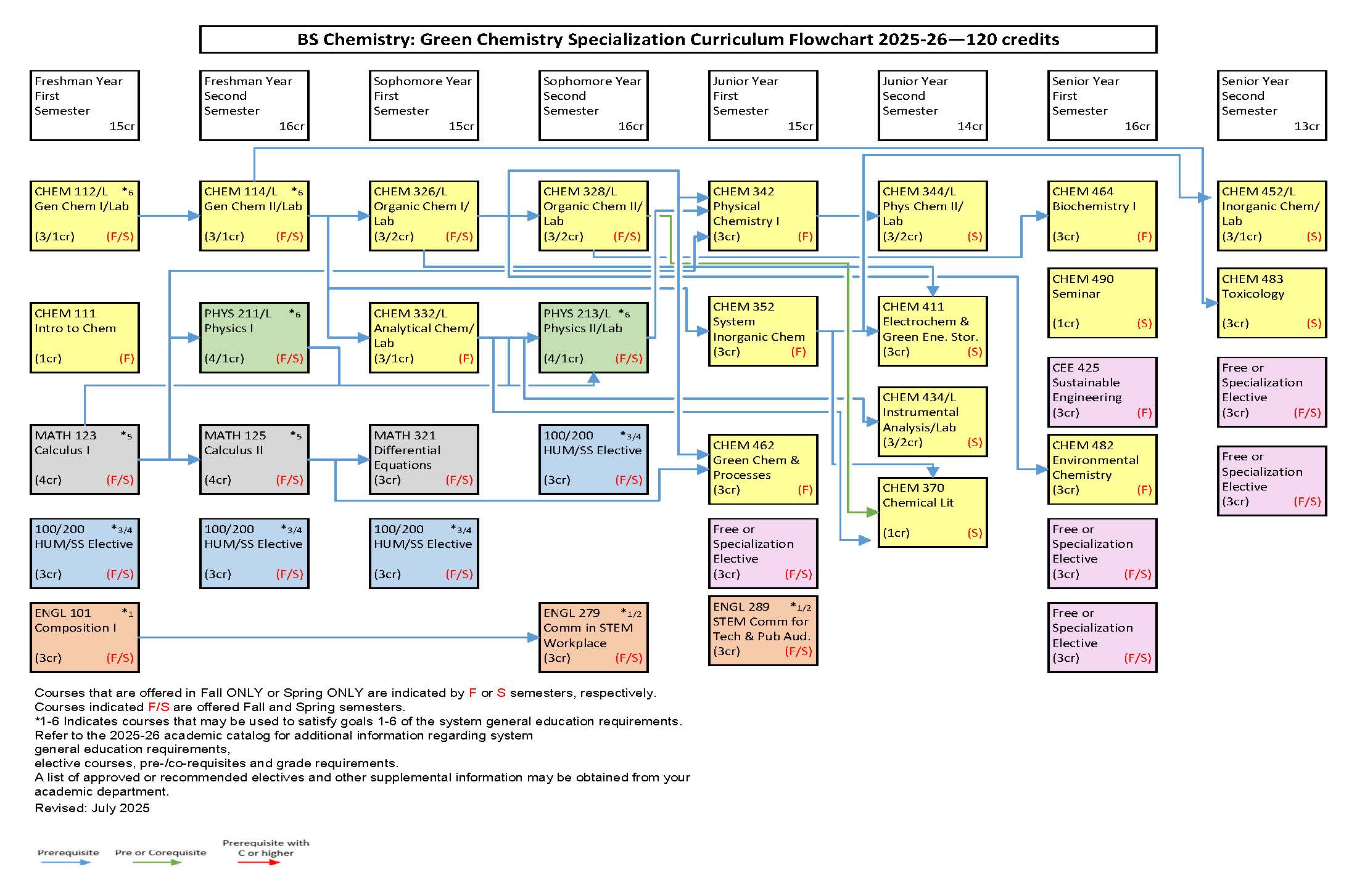 A specialization is considered a separate major in South Dakota Mines’ student record system. In order to pursue this specialization, please request a change of major even if you are currently pursuing a major in the non-specialized version of Chemistry . Notes: